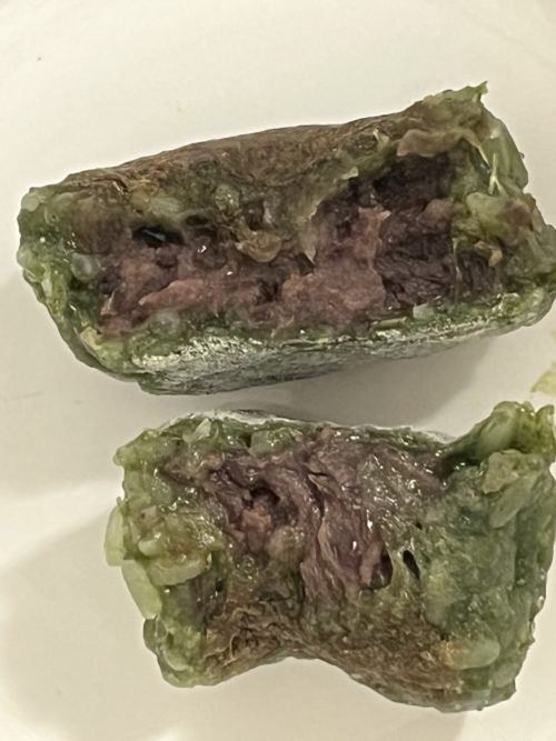 袋から開けると、モチモチしていて、よもぎの香りが少しします。