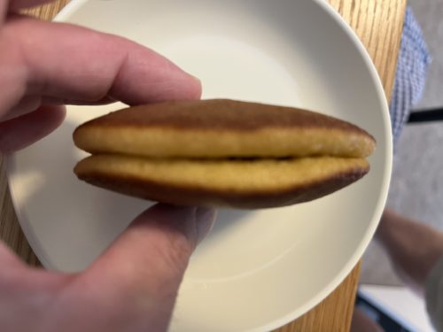 どら焼きを持った感じは、重厚感があります。