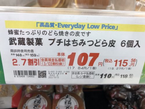 武蔵製菓のプチはちみつどら皮の金額